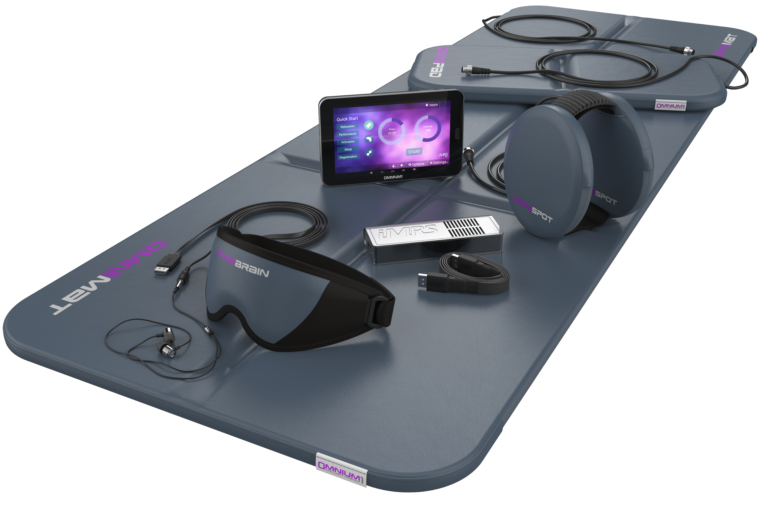 Has an integrated brain entrainment system incorporating colour and light delivered through VR goggles (additional option).